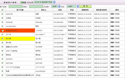 和客户的交流过程同时也是对客户进行筛选的过程,每一次的交流、对话都能得到相应的结果,客户是否对我们的产品感兴趣?是否在近期就有可能购买?逐步的了解,逐步的筛选,最终将得到最有价值的客户资源。 图中不同颜色表示的是客户关注度不同,根据颜色的区分,销售人员会很快的找到最有价值的意向客户。